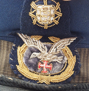 Portuguese Air Force Officer Visor Cap. Cap is clean and appears to be unissued. Small size. A little dusty from storage. The interior is in very good condition. Bullion is intact and super clean. The leather bill is in great shape.