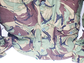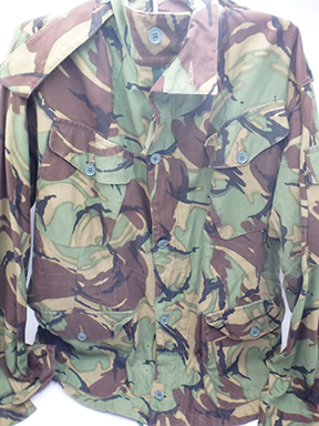British Army 1968 Pattern DPM Combat Smock. Cotton material. Has been issued with some wear from usage. Overall, in good condition. Zippers work well. Smock measures shoulder to shoulder 21 inches, front chest size 23 inches, sleeve length from shoulder to cuff is 27 inches and top of the neck to the base of the shirt is 33 inches.