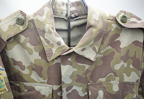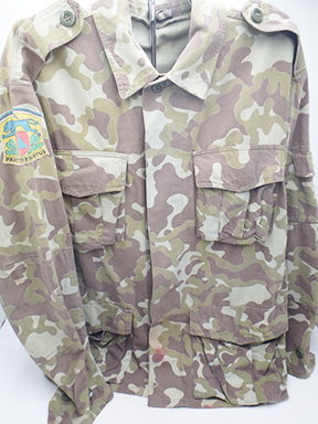 1990's Estonian Rescue Service Camouflage Shirt. Cotton material. Has been issued with some wear from usage. Overall, in good condition. Insignia is in good condition. Shirt measures shoulder to shoulder 20 inches, front chest size 22 inches, sleeve length from shoulder to cuff is 24 inches and top of the neck to the base of the shirt is 31 inches.