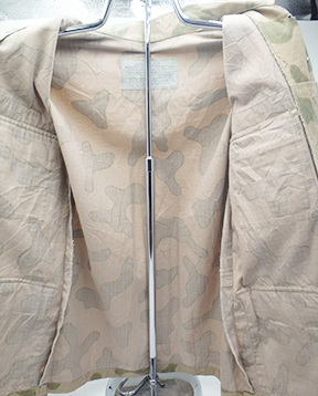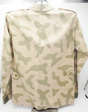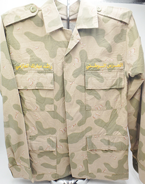 1990's or 2000's Kuwaiti Camouflage Shirt. Cotton material. Has been issued with some wear from usage. Overall, in good condition. Insignia is in good condition. Shirt measures shoulder to shoulder 15 inches, front chest size 17 inches, sleeve length from shoulder to cuff is 23 inches and top of the neck to the base of the shirt is 28 inches.