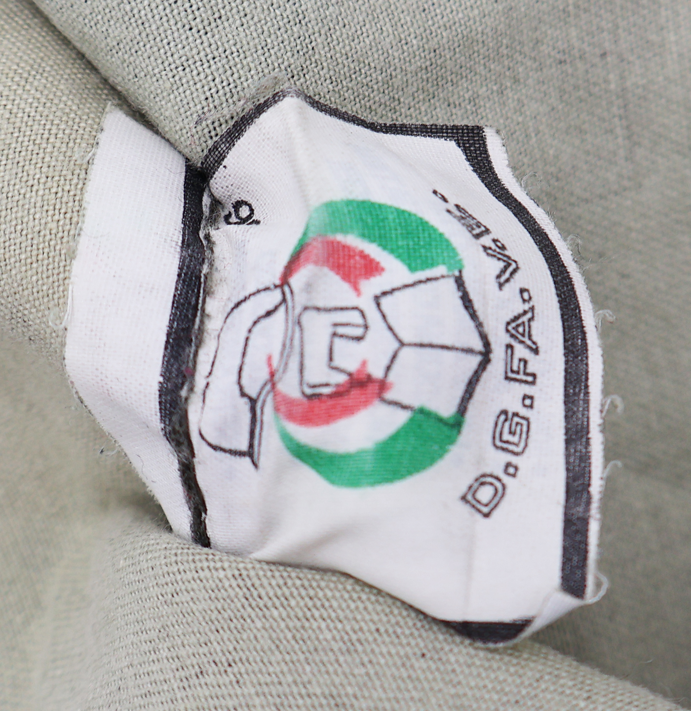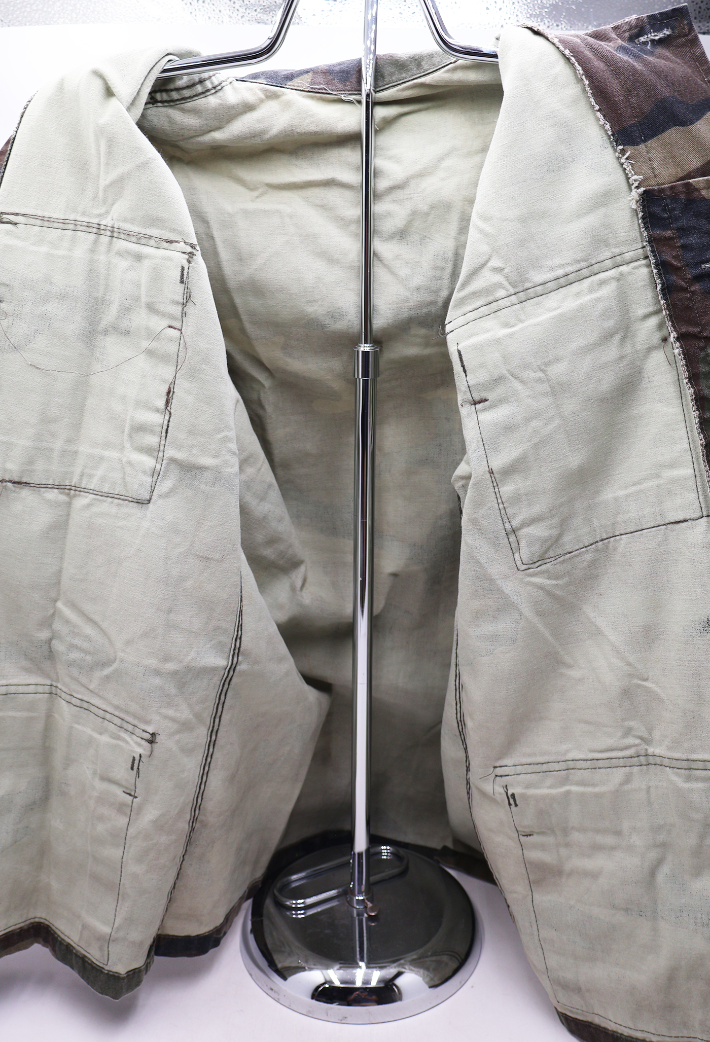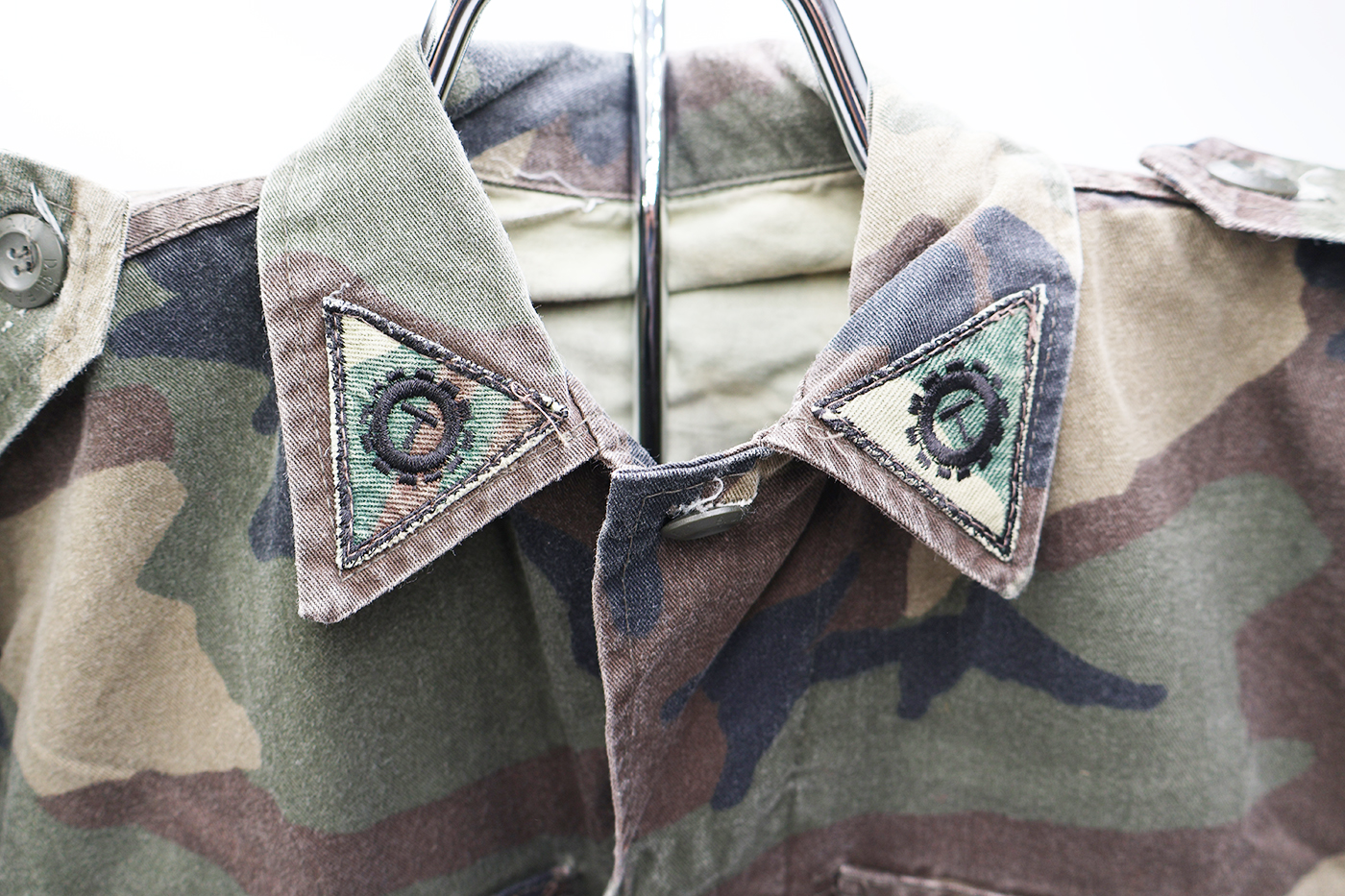 1980's Mexican Army Camouflage Shirt and Trousers. Cotton material. Has been issued with some wear from usage. Overall, in good condition. Insignia is in good condition. Shirt measures shoulder to shoulder 16 inches, front chest size 28 inches, sleeve length from shoulder to cuff is 23 inches and top of the neck to the base of the shirt is 32 inches. Trousers measure 32 inches at the waist and 30 inches at the inseam.