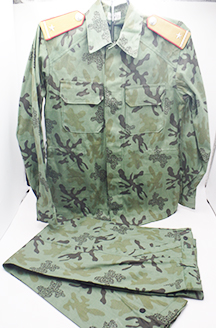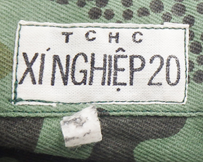 Late 1970's era People's Army of Vietnam Camouflage Uniform. Cotton material. Has been issued, but has just very minor wear. Both the jacket and trousers are in good condition. Rank insignia is in good condition. Jacket measures shoulder to shoulder 17 inches, front chest size 19 inches, sleeve length from shoulder to cuff is 24 inches and top of the neck to the base of the shirt is 29 inches. Trousers measure 29 inches at the waist and 29 inches at the inseam.