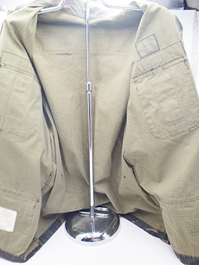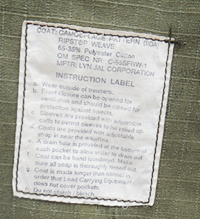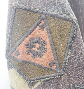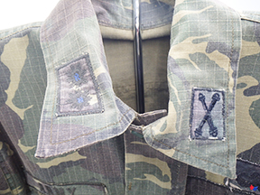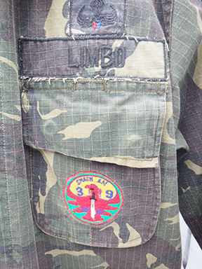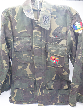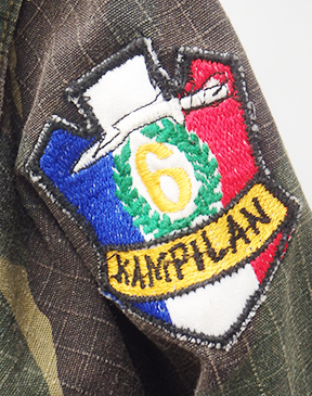 1980's era Philippine 6th Infantry Division Camouflage Jacket. Rip-stop material. Has been issued with some wear from usage. All of the insignia is in good condition. Jacket measures shoulder to shoulder 17 inches, front chest size 21 inches, sleeve length from shoulder to cuff is 24 inches and top of the neck to the base of the shirt is 30 inches.