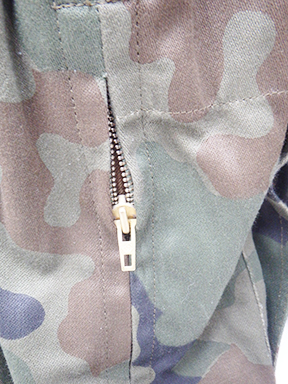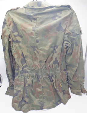 1970's or 80's Polish 56th Special Company Camouflage Jacket. Cotton material. Has been issued with some wear from usage. Overall, in good condition. Insignia is in good condition. Zippers work well. The 56th was tasked with Sabotage and intelligence gathering missions in the event the Cold War got hot. Jacket measures shoulder to shoulder 17 inches, front chest size 19 inches, sleeve length from shoulder to cuff is 25 inches and top of the neck to the base of the shirt is 31 inches.