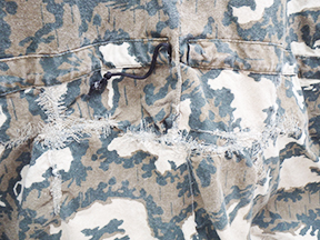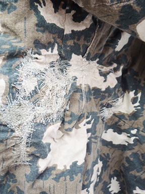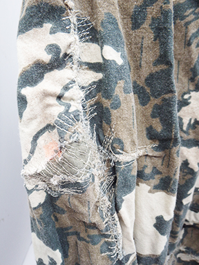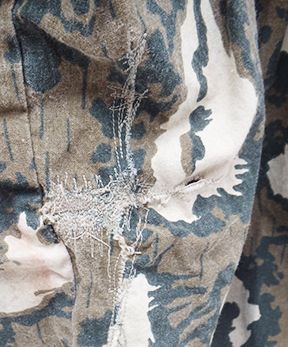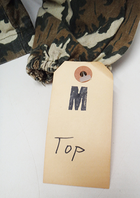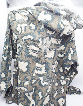 Screen used Russian Pullover Camouflage top from the 1984 film "Red Dawn". Has costume house size tag and stamping. These were made from scratch for the film to imitate Soviet airborne camo. Overall in good condition. Has a lot of squib holes and repairs. Some fake blood stains are well. Labelled a size medium. This came out of a recently closed costume house in Hollywood.