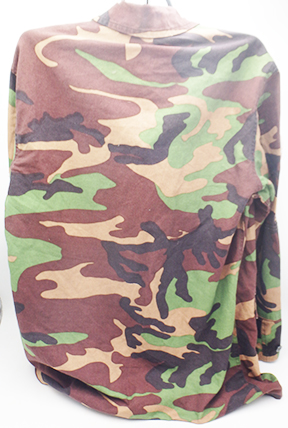 1991 dated Turkish DPM Camouflage Shirt. Cotton material. Has been issued with some wear from usage. Overall, in good condition. Insignia is in good condition. Shirt measures shoulder to shoulder 19 inches, front chest size 21 inches, sleeve length from shoulder to cuff is 24 inches and top of the neck to the base of the shirt is 33 inches.