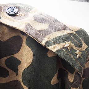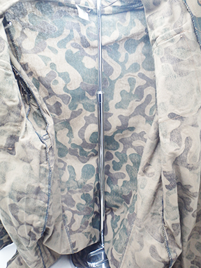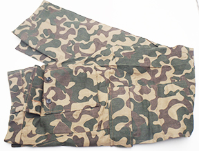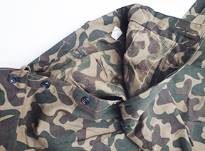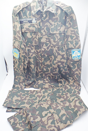 1990's Ukrainian Airborne Camouflage Shirt and Trousers. Cotton material. Has been issued with some wear from usage. Overall in good condition. Insignia is in good condition. Shirt measures shoulder to shoulder 17 inches, front chest size 19 inches, sleeve length from shoulder to cuff is 26 inches and top of the neck to the base of the shirt is 33 inches. Trousers measure 32 inches at the waist and 33 inches at the inseam.