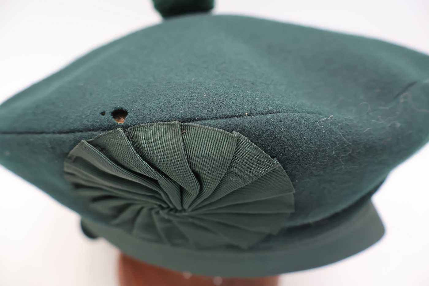 WWII Era Canadian Canadian Tam O Shanter. Green Wool Body Wool Beret. Size is 7 1/8. The beret is in great shape with just some mothing on the font (see photos). Canadian made by A.B. Hewer Toronto.