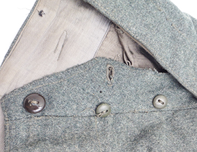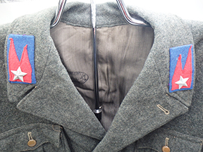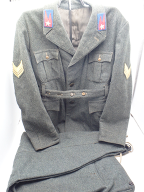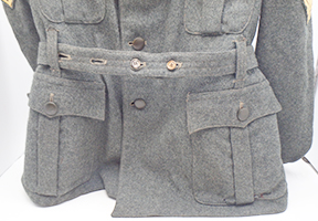 WWII Italian Army Tank Crewman Tunic and Trousers. Tunic is in good condition with just very minor wear and some staining. The epaulettes have been removed, probably when the uniform was issued. Very well constructed. Tunic is 1942 dated. All of the insignia is in great shape. All of the buttons are in good shape. One of the rear pocket buttons is missing. Trousers are also in good shape with just minor wear. Jacket measures shoulder to shoulder 18 inches, front chest size 20 inches, sleeve length 23 inches and top of the neck to the base of the jacket is 34 inches. Trousers measure 32 inches at the waist and 28 inches at the inseam.