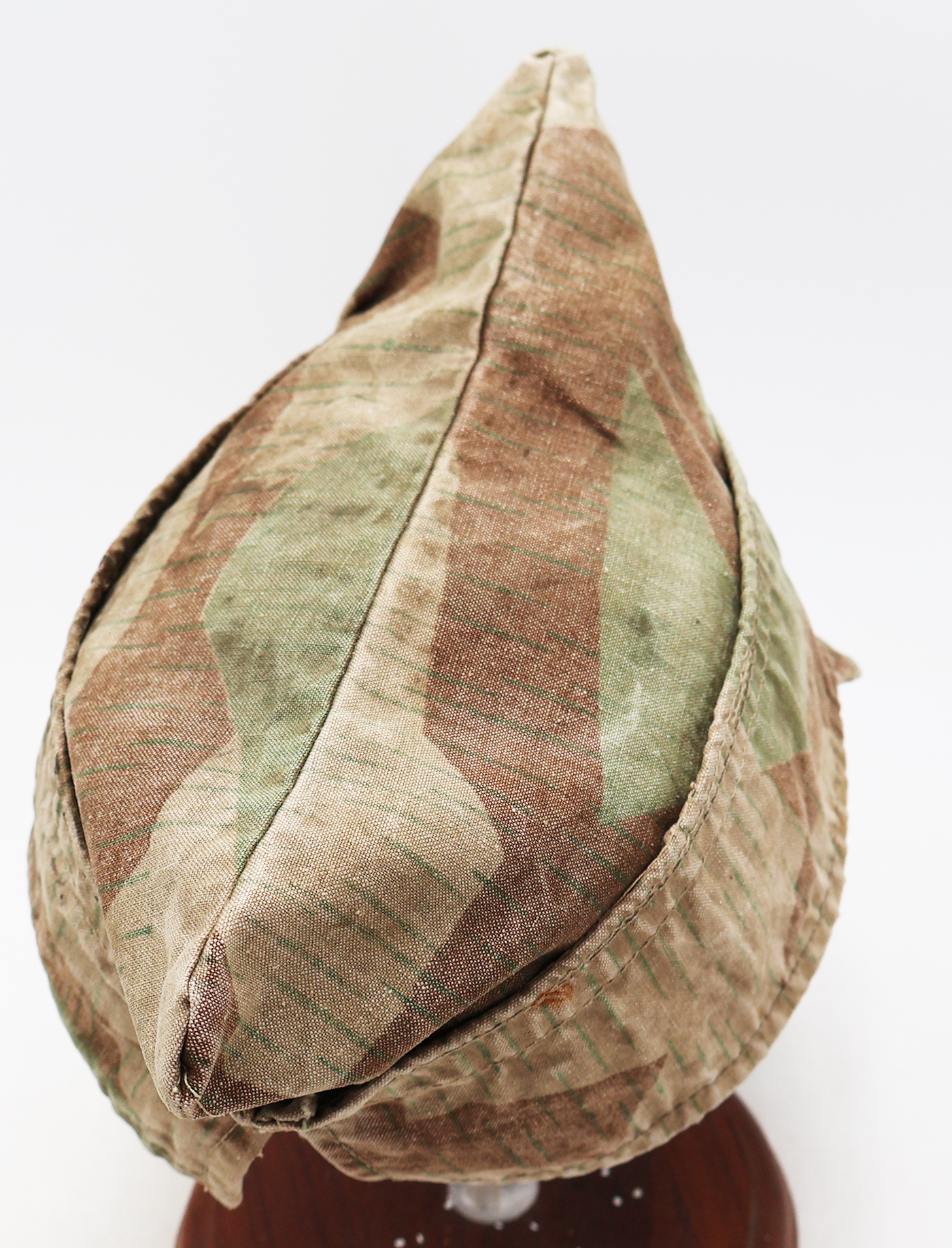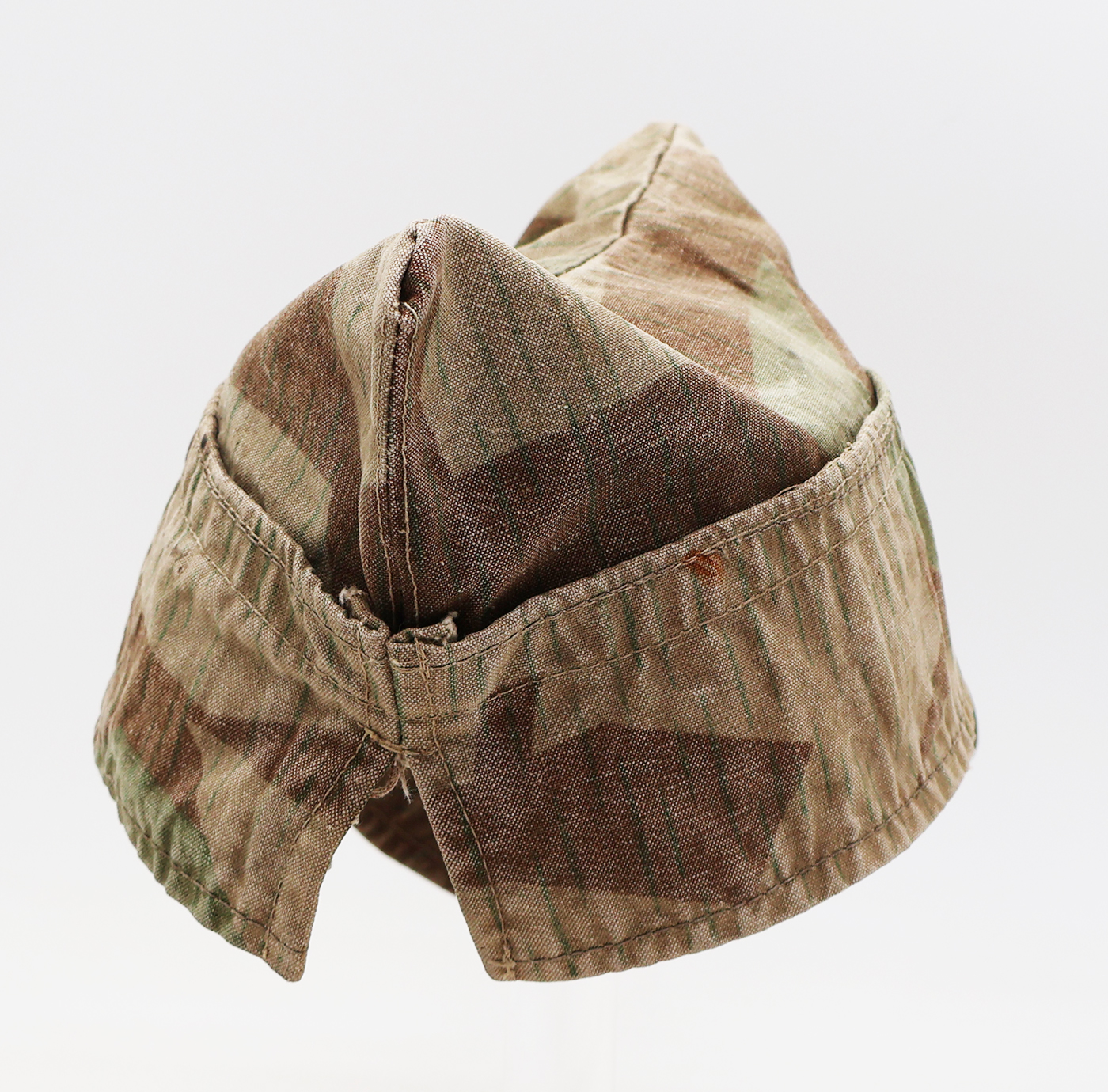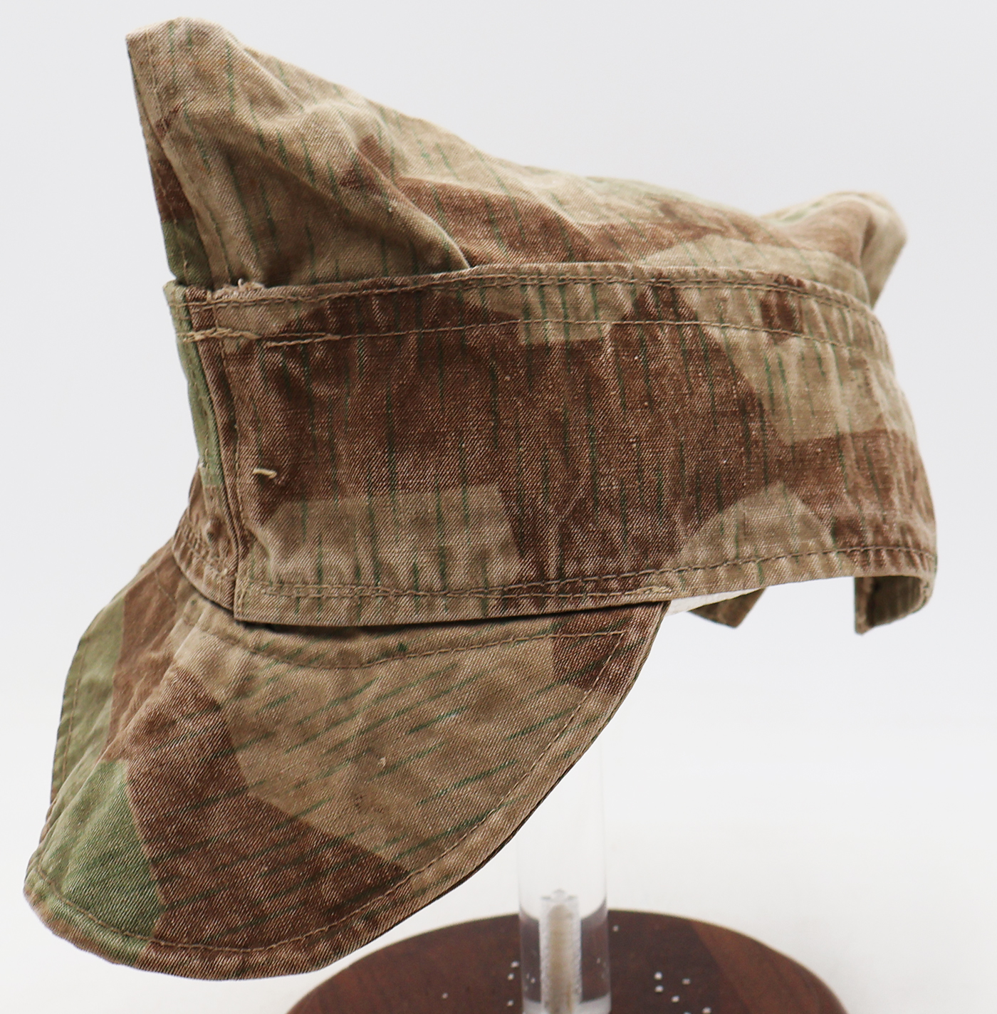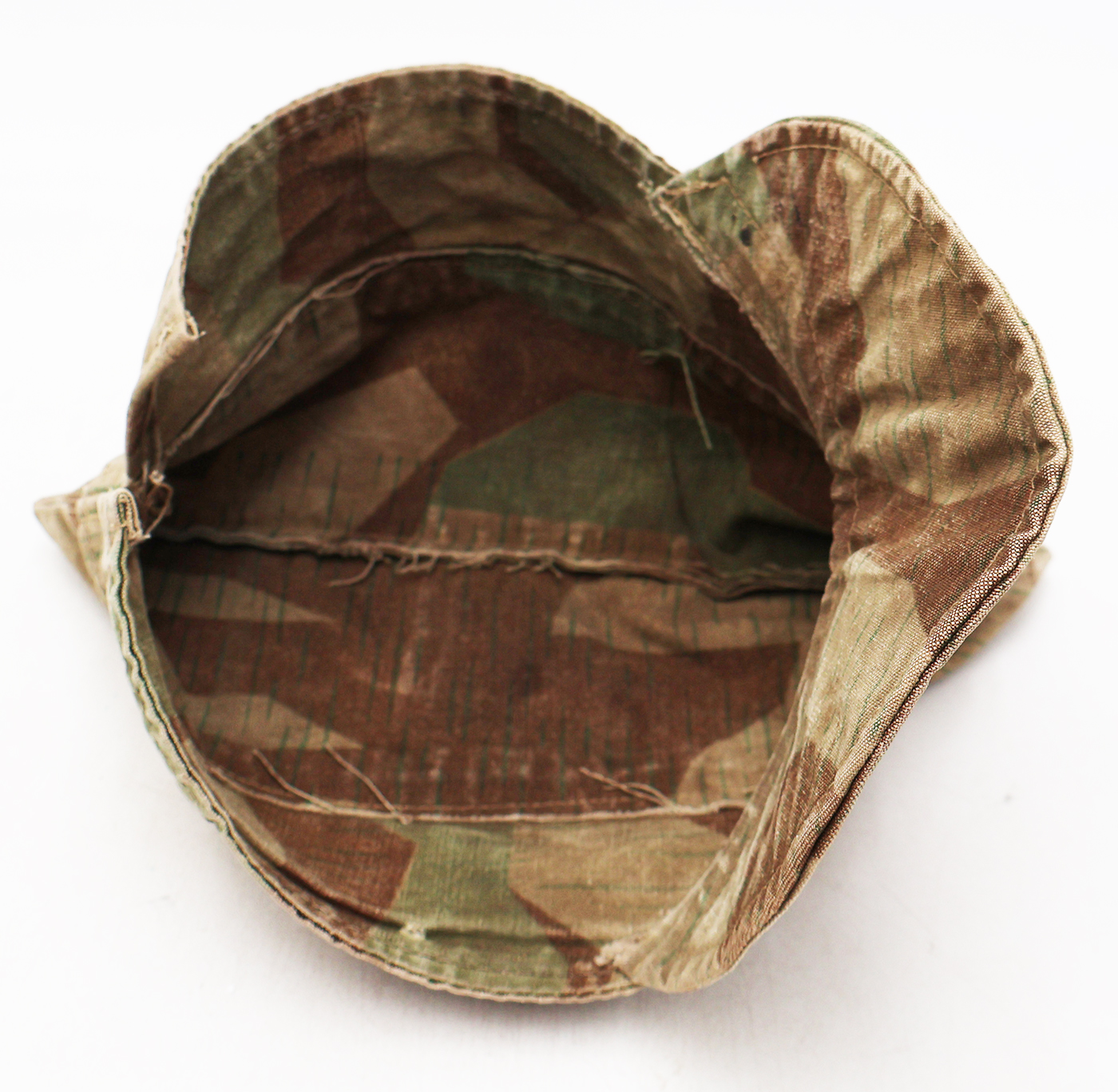 Post WWII Custom Field Cap Made from German M31 Splinter Material. Material is worn from usage with staining and wear. But is still intact and wearable. Overall in solid condition. No stampings or marks can be located. The cap is believed to be late 1940's or 1950's made and is cut like a French or Polish cap.