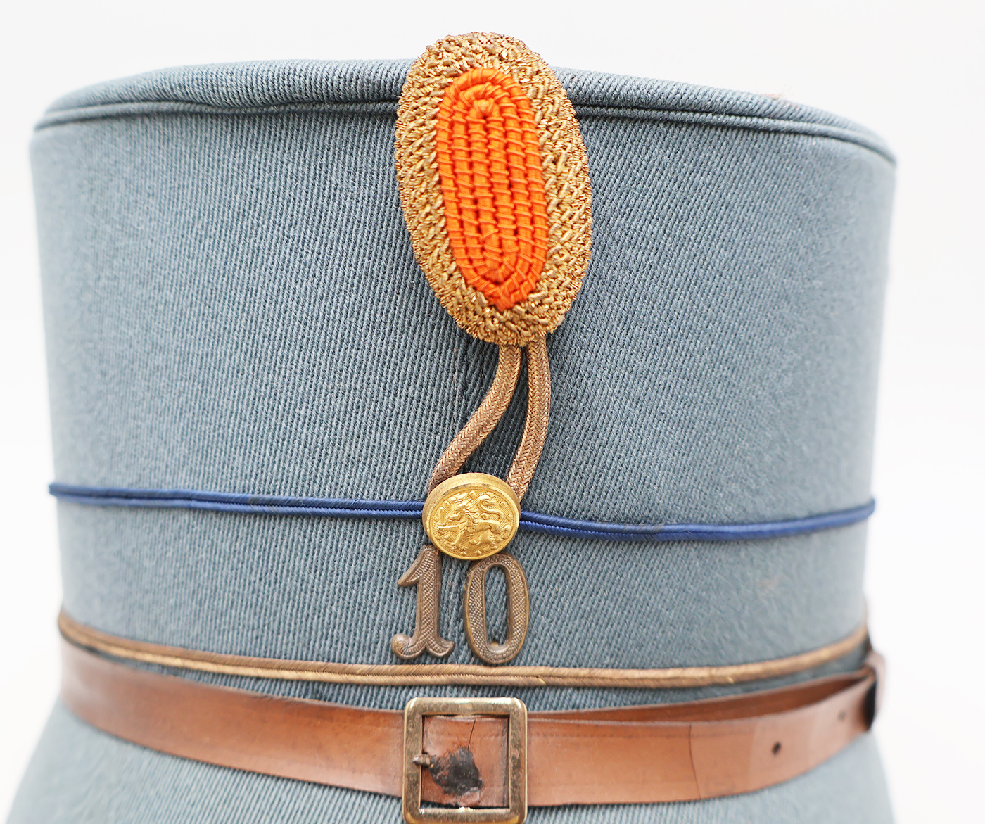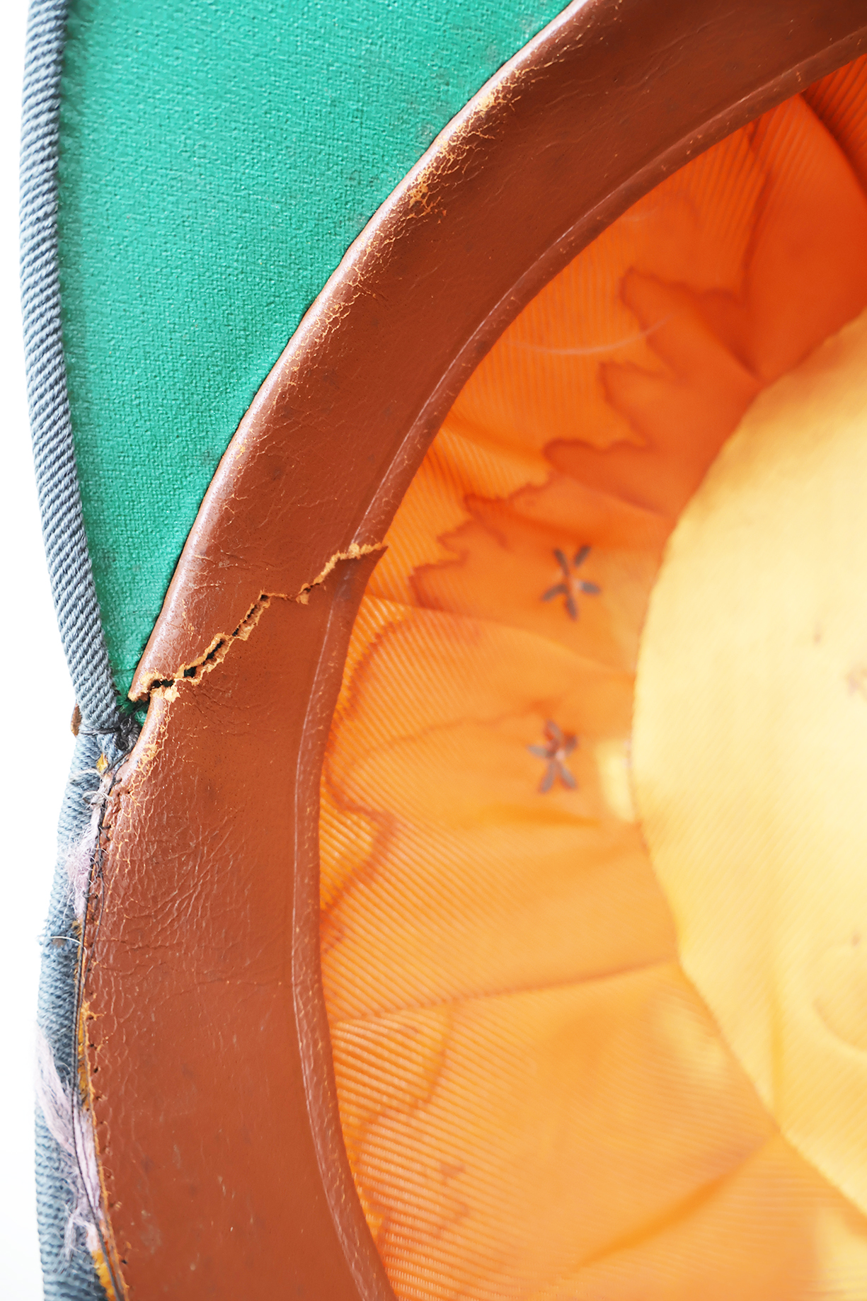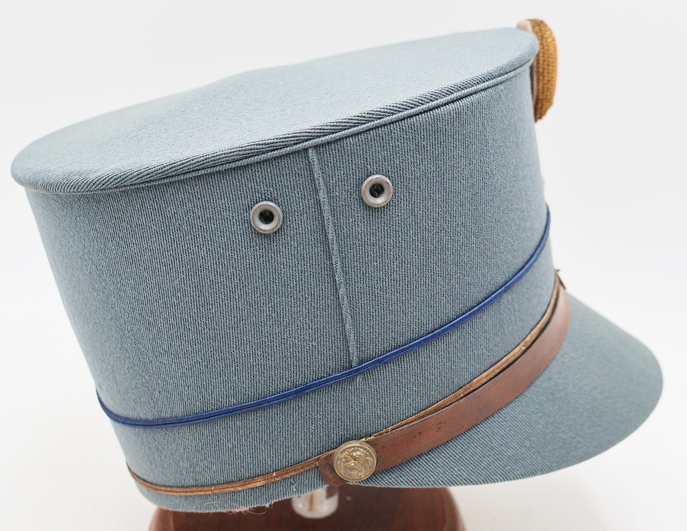 WWII era Dutch Model 1916 Netherlands Infantry Officers Kepi. Has good form and is in good condition. Bullion is clean and wool is in good shape. Leather sweatband and chinstrap is dry and cracked (see photos). The liner is worn but intact.