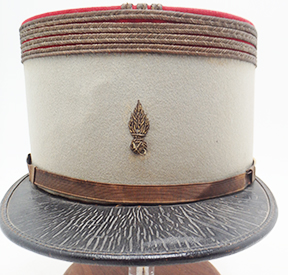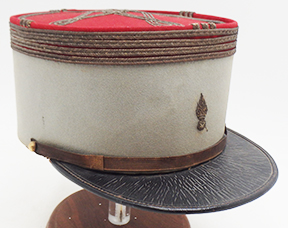 WWII era French Moroccan Colonial Infantry Officers Kepi. Has good form and is in good condition. Bullion is a bit dull from age and wool has some staining. Leather sweatband and lining is worn, but intact.