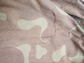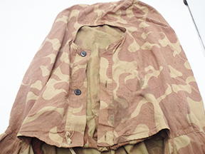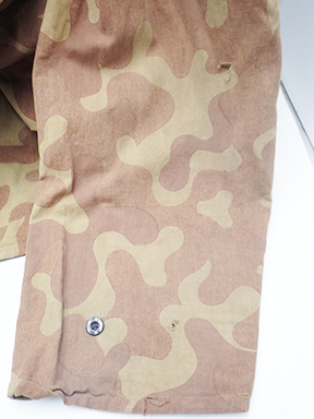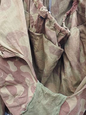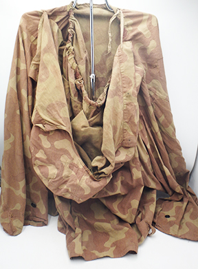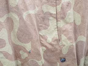 WWII Russian Camouflage Amoeba Pattern Pullover Top. Thin cotton material. Has been issued with some wear from usage, with a few buttons missing. Has several period field repairs. Overall, in solid condition. A rare piece with a story to tell.