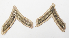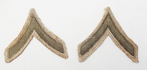 WWII era Khaki PFC Rank Chevrons. Khaki/cotton construction. Chevrons are in good condition and are removed off of a uniform.