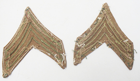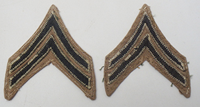WWII era USMC Corporal Rank Chevrons. Khaki twill construction. Chevrons are in good condition and removed off of a uniform.