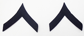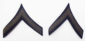 WWII era Wool PFC Rank Chevrons. Wool on wool construction. Chevrons are in very good condition and appear unused.