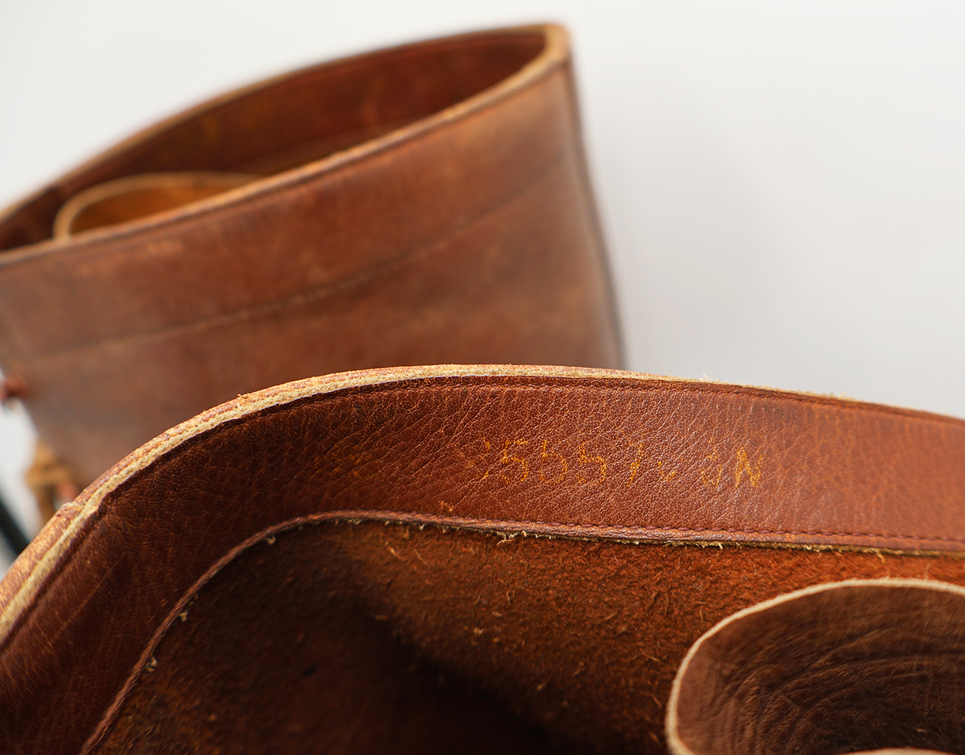 M31 Mounted Service Boots. The leather is still supple with no notable wear or damage. They measure as a size 7. Soles are worn and stiff, but in solid condition.