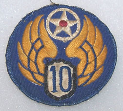 WWII Indian Made 10th Air Force Patch. Almost three inches tall. Indian hand embroidered. Removed from a uniform.