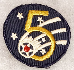 WWII AAF 5th Air Force Australian Made On Twill Patch. Two and a half inches in diameter. Australian machine embroidery on twill. Used.