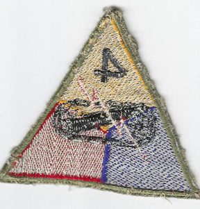 WWII Occupation - Late 1940's 4th Armor Division Theatre Made Patch. German machine embroidered. Uniform removed.