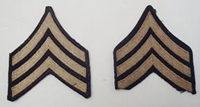 WWII era Black Twill Sergeant Rank Chevrons. Black twill construction. Chevrons are in good condition and removed from a uniform.