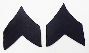 WWII era Wool Sergeant Rank Chevrons. Wool on wool construction. Chevrons are in very good condition and appear unused.