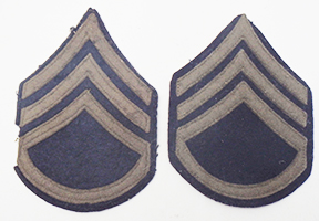 WWII era Wool Staff Sergeant Rank Chevrons. Wool construction. Chevrons are in good condition and have been removed off of a uniform.