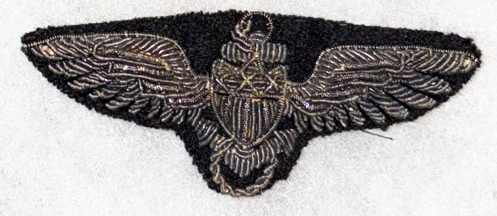 WWII US Navy / US Marine Corps WWII US Navy Submarine Bullion Dolphins Patch. Black wool background with thick gold bullion embroidered details. Uniform removed.