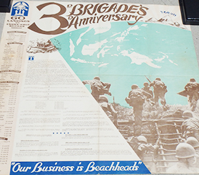 WWII era US Army 3rd Engineer Special Brigade Unit History Map. Paper map has been folded for a long time but still in good shape with just some wear around the edges and minor staining. Map is dated to 1945. Measures approximately 19 x 20 inches.