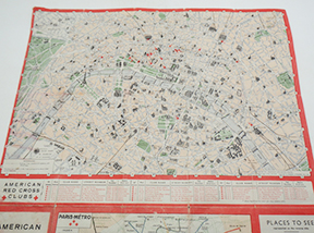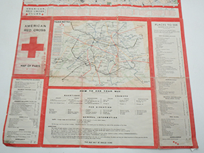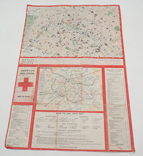 WWII era Red Cross Map of Paris. Printed on a captured German map. Was framed at one point and has the residual tape in the corners. In good condition with some wear from age. Measures 14 x 21 inches.