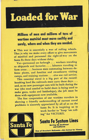 WWII Santa Fe Railroad 1944 Everymans Almanac. Small size. Softbound. 40 pages. Full of great illustrations related to the war. Shows minor storage wear.