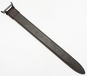 WWII era 16 Inch Bayonet Scabbard. Scabbard is intact with no splits or cracking. Has some surface wear from usage. Hook is in good shape. We have 10 available all in roughly in the same condition. We will pull the best one we can find when you order.