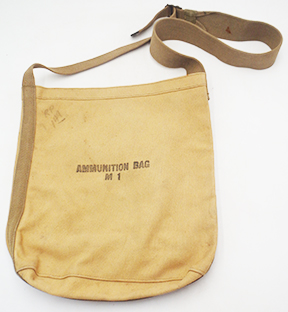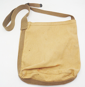WWII era 60mm Mortar M1 Ammunition Bag. Khaki Cotton/canvas body is in good condition with minor staining from usage. Bag could still hold weight. No makers mark can be seen.