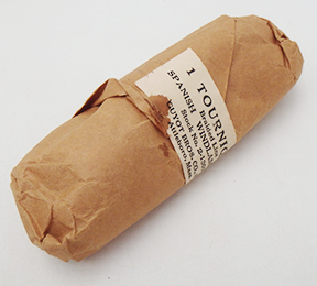 WWII Navy Corpsman Tourniquet. Still sealed in the wrapping paper. Clean and in great condition. Would be hard to find in better condition.