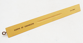 WWII US Army Engineer Triangular Ruler. Wooden body with brass hook. Clean and appears unused.