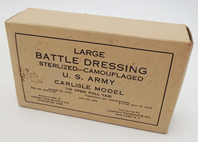 WWII era Large Battle Dressing. Box is clean and in good condition. Bandage is still sealed and has never been out of the box. 1943 dated.