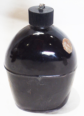A rare set that comes with a WWII Marine Corps 2nd pattern canteen cover with an enameled canteen and cup. The cover is in good condition with no holes and rips. The canvas appears to have rust water stains splashed accross the face. The canvas is not faded. Behind the right flap next to the hanger is a Depot mark. The hanger is the high-mounted placement type in very good, solid condition. The lift-the-dots are in great shape. The canteen is an M-1942 enameled type in solid condition with some chips and surface rust. It is stamped US REP 1942. The cup is aluminum and is stamped US FOLEY MFG. 1942. The cup has some surface marks and rust but no holes or large dents.
