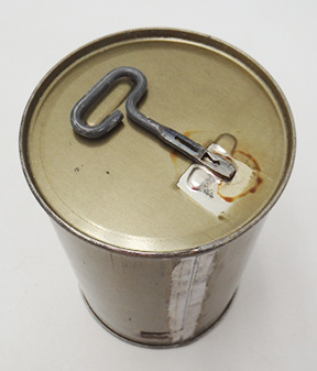 Late or post WWII era Plaster of Paris Sealed Can. Sealed metal body with key. In good condition with hardly any wear from age.