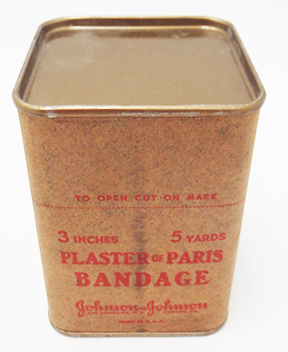WWII era Plaster of Paris Sealed Tin. In excellent condition with hardly any wear from age. Cardboard body with brass ends.