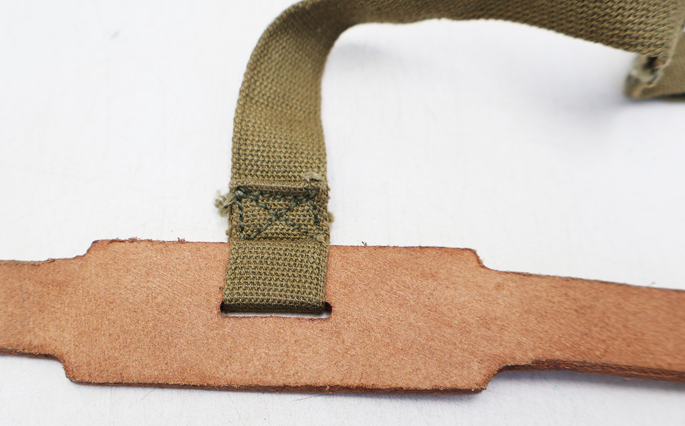 Tail Pack Leather Strap. Leather is supple and clean. Cotton/canvas tape is in very good condition. Strap looks unissued. Would be hard to find in better condition.