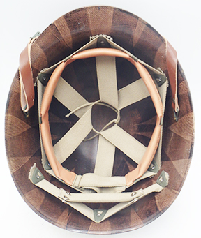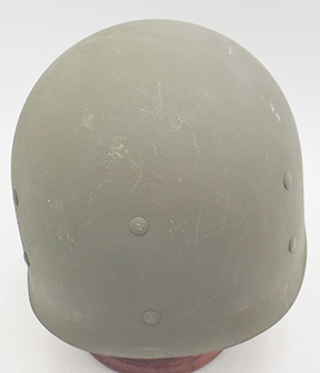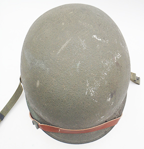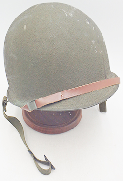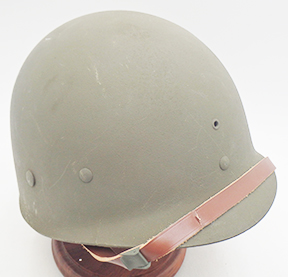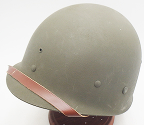Late war WWII M1 Helmet and Liner Front seam, Swivel bale. The helmet shell is in solid condition with just some wear to the corking and paint. Bales are in very good condition. The liner is clean and all of the webbing is intact. Much of the Liner webbing and hardware appears to be replacement parts, suggesting the liner has been restored. Liner is a CAPAC and is also stamped Micarta 1952. The leather liner chinstrap is a reproduction. The chinstraps are OD and are in good condition with minor wear. The metal hardware is overall clean and in good shape. The metal front seam is in great shape. The follow me strip looks like a more recent addition to the shell. Overall a very solid display piece.