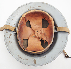 WWII era US Navy Grey Painted M1917A1 "Kelly" Helmet. The outside of the helmet is in solid condition with just some minor wear. The chinstrap is intact and strong. The leather is supple with minor wear from age. Paint is overall in good condition.