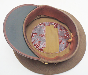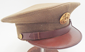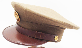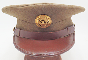 WWII Army Wool Enlisted Visor Cap. Wool OD cover. Leather brim is in great shape. No markers mark can be seen. Has been worn with some wear to the lining. Roughly a size 7. No mothing or notable wear to the wool. Overall in good condition.