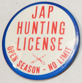 WWII Japanese Hunting License Anti-Axis Pin. Three and a half inches in diameter. Shows like use. Larger size then you normally see. Pin back.
