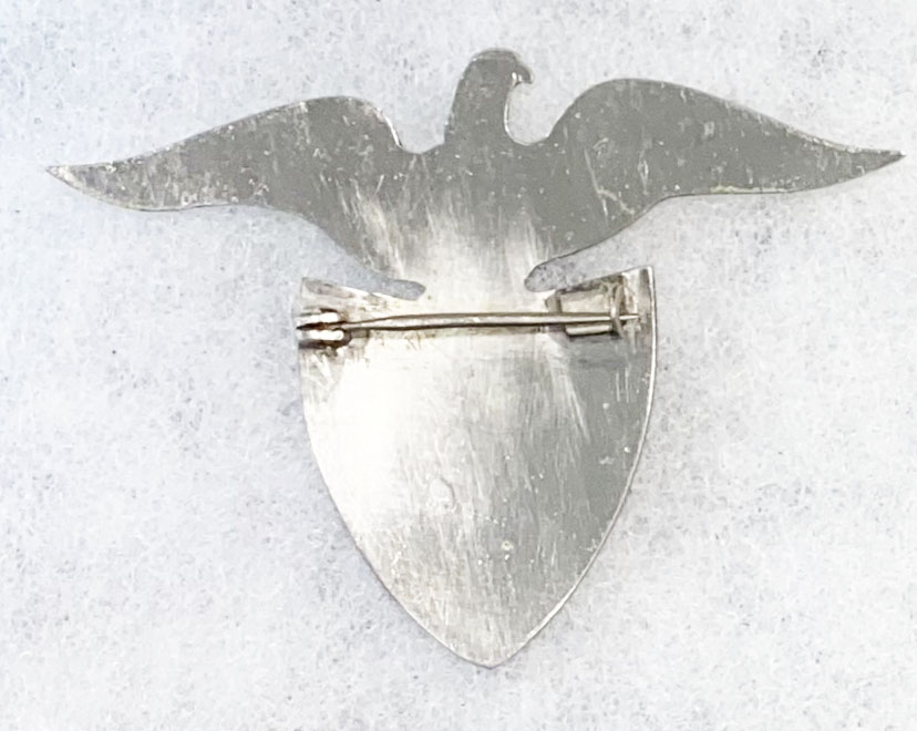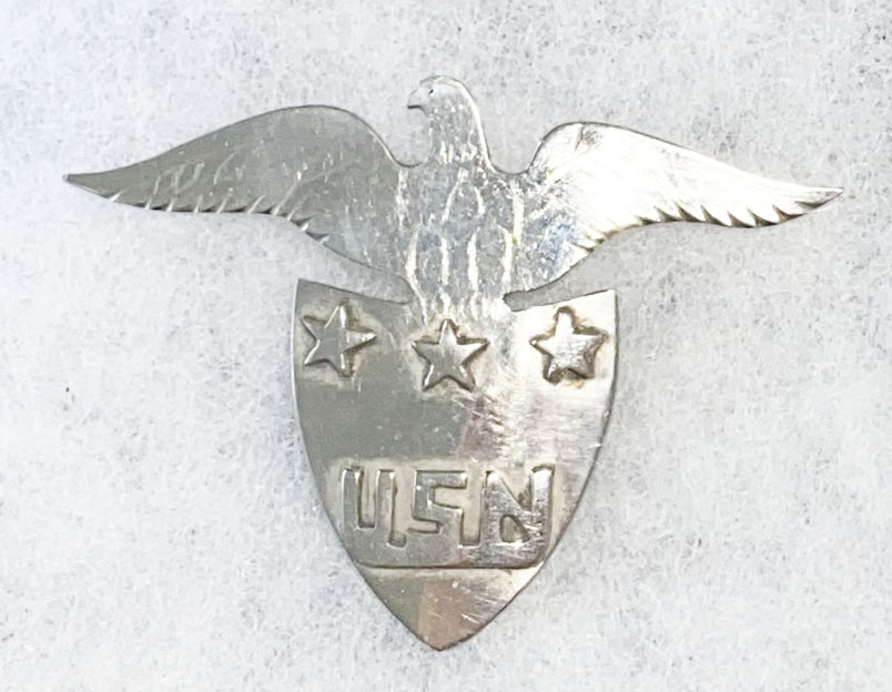 WWII - Late 1940' US Navy Custom Made Chief Petty Officer / CPO Cap Badge. About three by three and a quarter inches tall. Cut similar to a trench art made piece. Looks Philippine made. Pin back.