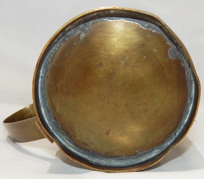 WWII Corregidor Tunnel Club Brass Trench Art Mug. Hand hammered brass mug. Hand etched into the front is CORREGIDOR TUNNEL CLUB 1946. On the reverse is a LT bar with R.J. DUFFNER LT MC also hand etched and a officers medical collar device. Mug has been well used. Have not done any research on the person but what a piece of history.