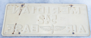 WWII AAF Meridian Air Base Car License Plate. Stamped metal construction. Has a set of winged props and is numbered 542. Shows minor use.