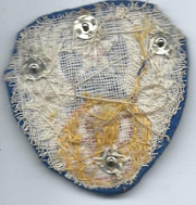 WWII English Made 9th Air Force Patch. Blue wool background with heavy bullions details. On the reverse are four sewn snaps, for removing from a uniform when laundered. Has been used.