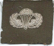 WWII-Late 1940's Bullion Airborne Jump Wing. OD chocalte gaberdine background. Heavy silver bullion details. US made. Unused.