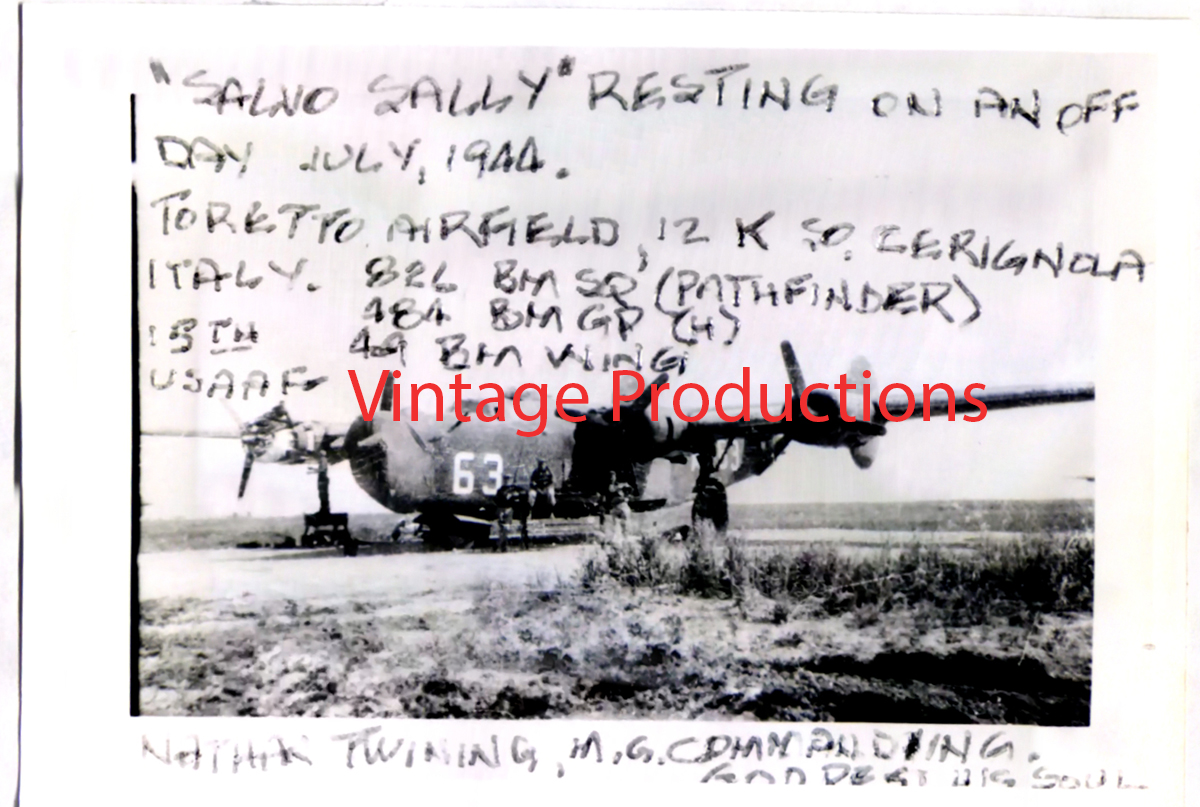 826th Bomber Squadron "Salvo Sally" B-24 Aircraft Photo